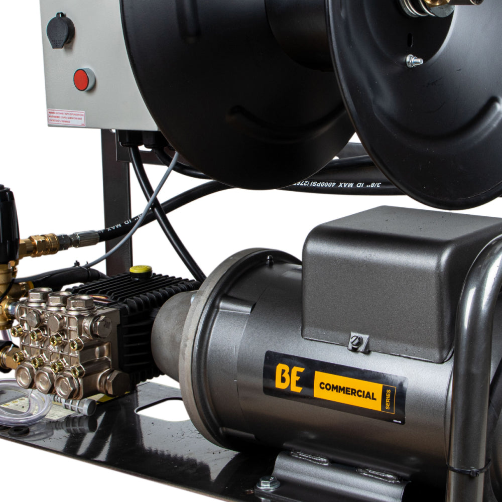 Built around a rugged 5.0 HP three-phase Baldor motor and a General Pump triplex plunger pump, this system is built to withstand continuous-duty operation. It also accepts high inlet temperatures up to 85°C (185°F) making it perfect for operations with an externally heated water supply – food processing, equipment maintenance and sanitation industries.