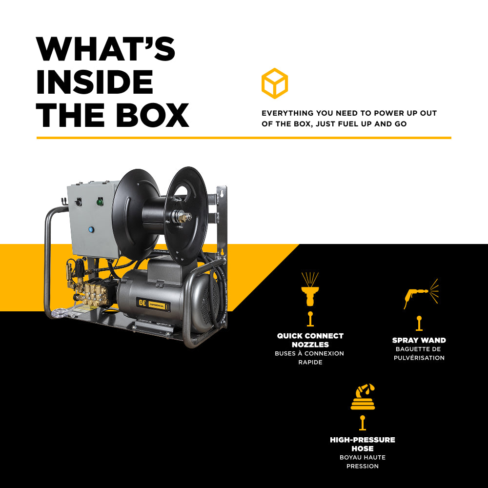 Accessories include high-pressure hose, spray gun wand assembly, and spray nozzles so that it can be used right out of the box.