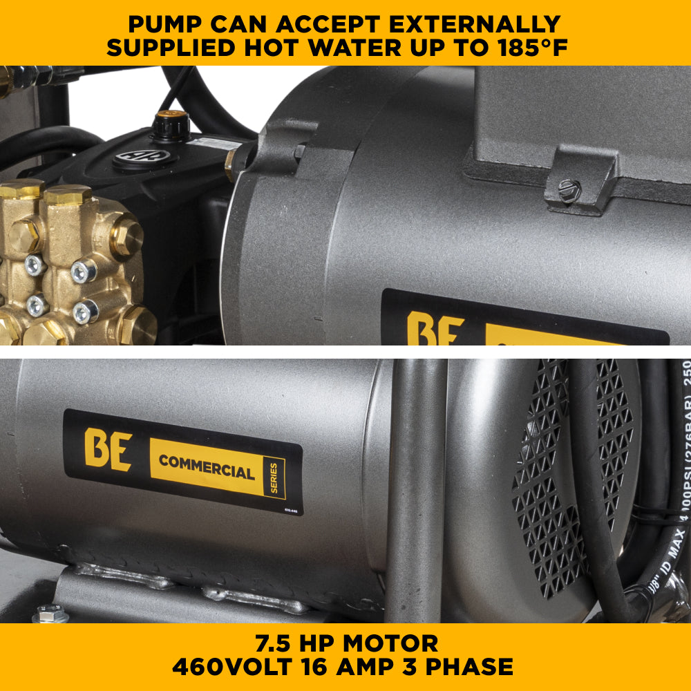 Commercial grade General triplex pump featuring die-cast body, forged brass manifold, solid ceramic plungers. Special plating and seals to handle rigorous temperatures.