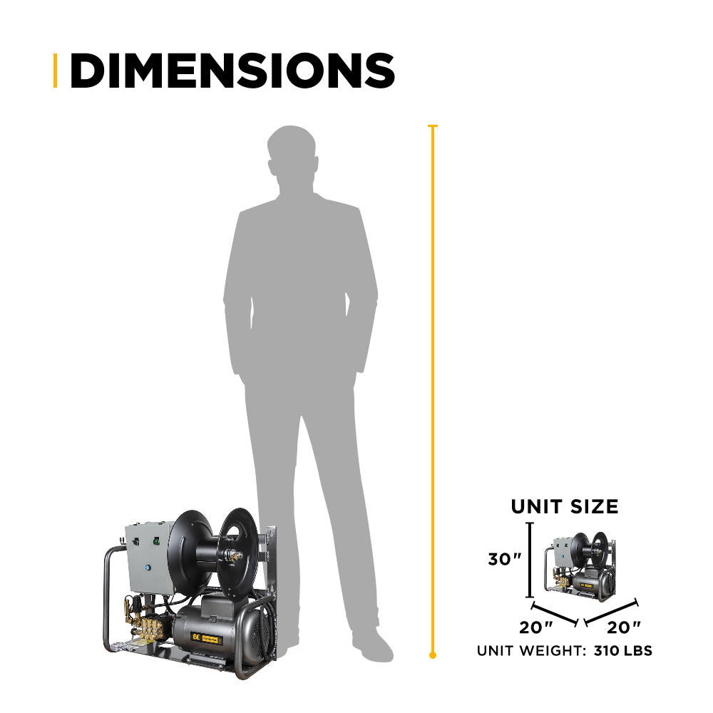 ⚠️ Important: This unit ships without plug or switch. It must be hardwired by a licensed electrician into a 460V, three-phase power source to ensure safe and compliant operation.So your wall mounted pressure washer is a permanent, tamper proof installation for industrial use.
